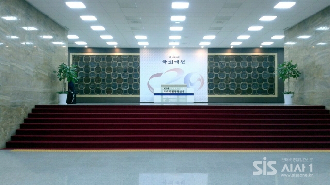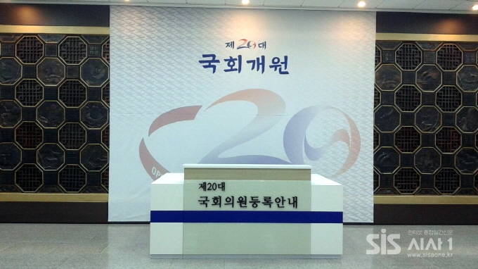11일 오전 여의도 국회본청 입구에 제20대 국회개원 이라는 글자와 제20대 국회의원등록 안내라는 표지판이 설치되어 있다.