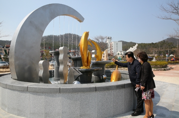 80여㎡의 규모인 희망분수는 땅끝에서 바다를 건너 세계를 향하는 해남의 기운을 느낄 수 있도록 금빛 돌고래의 역동적인 유영이 조각되었으며, 동전을 던지면 음악이 울려 퍼진다.