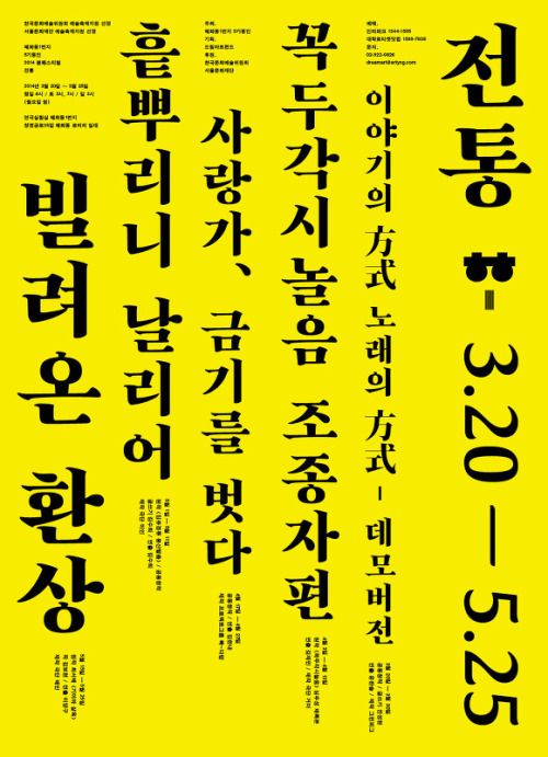 ‘전통’을 주제로 하는 이번 페스티벌은 대학로 연극실험실 혜화동1번지에서 이미 지난 3월 20일부터 10주 간 진행되고 있으며 다섯 편의 다양한 예술적 실험연극을 만나볼 기회가 될 것이다.
