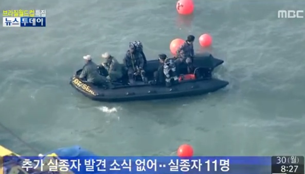 범정부사고대책본부는 이날 오전 민관군 합동구조팀이 지난 30일 오후 3시 7분부터 4시 27분까지, 이날 오전 3시 57분부터 5시 26분까지 두 차례에 걸쳐 수중수색을 했지만 실종자를 발견하지는 못했다고 밝혔다.