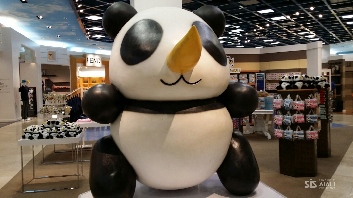 사이판에서 유일하게 백화점 갤러리 입니다. 백화점 진열대에 사이판 마스코트 판다곰이 좋은 자리를 차지하고 있다. 마스코트 판다곰은 사이판 다"라고" 한다.