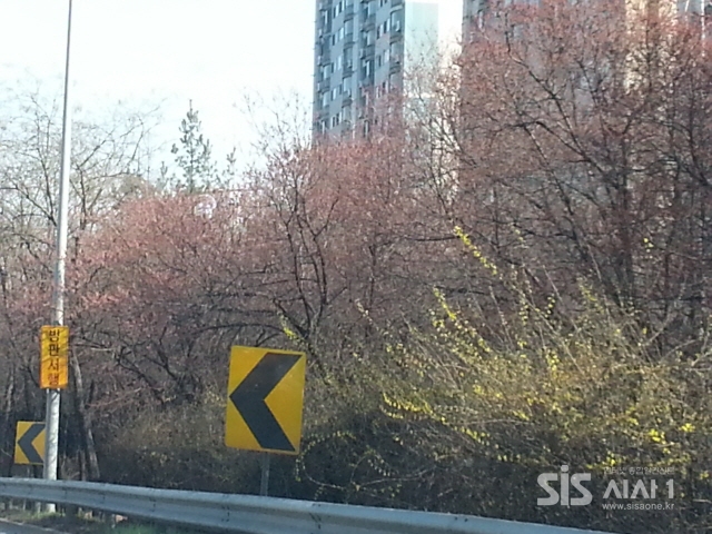 25일 노량진 수산시장 앞 올립픽 도로 주변에 있는 개나리와 벗꽃이 금방이라도 터질것 같아 잔득 부푼 꽃방울이 하나씩 터지기 기작한다.