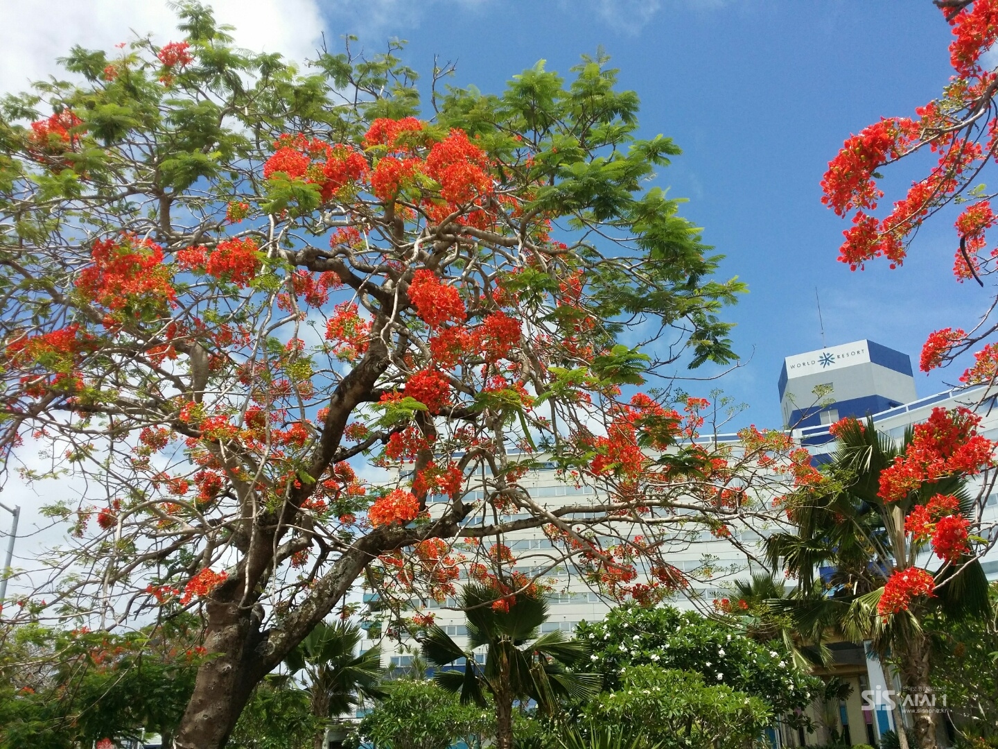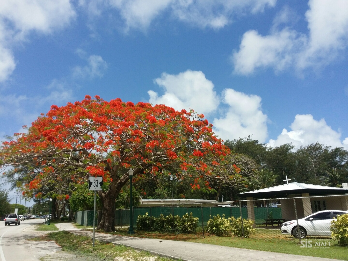 7일 사이판 비치로드에 있는 불꽃나무에 빨간 꽃들이 예쁘게 피어있다.