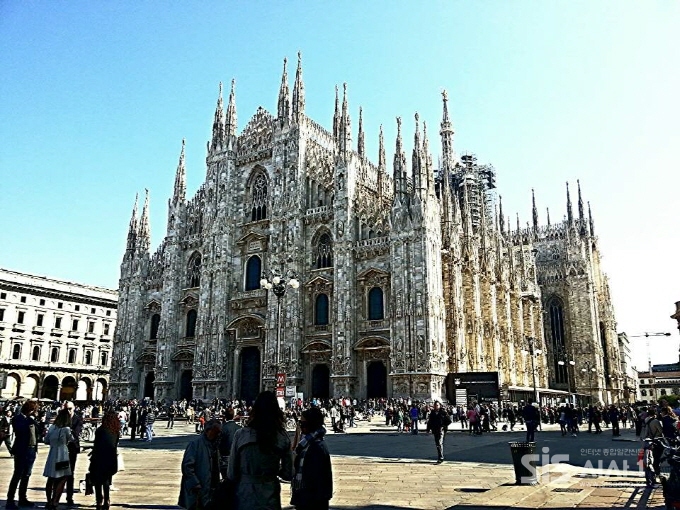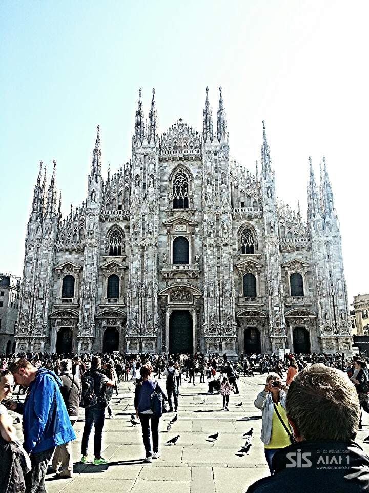 사진은 밀라노 두오모 성당이다. 성당이기 보다는 하나의 조각 작품이라고 말하고 싶다. 섬세한 조각과 웅장한 모습이 여러 행인의 시선을 모으고 있다.