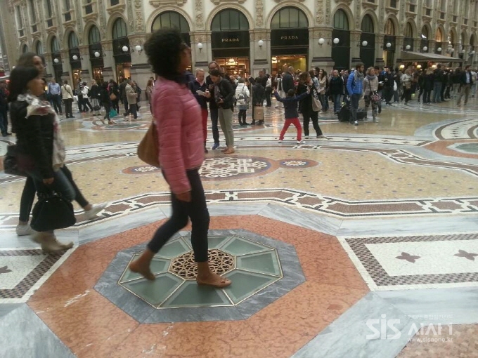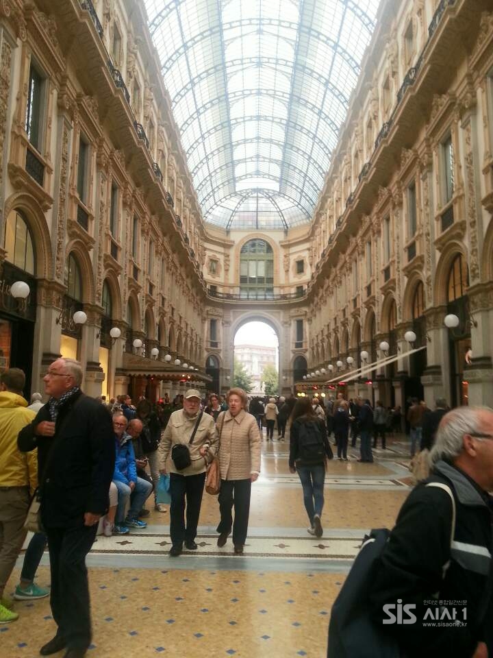 사진은 5일 많은 사람들이 갤러리 작품을 감상하면서 쇼핑하는 모습이다. 밀라노 두오모 명품쇼핑가 비토리오 임마누엘레 2세 갤러리는 밀라노의 응접실이라 불리는 호화 쇼핑가라 한다.
