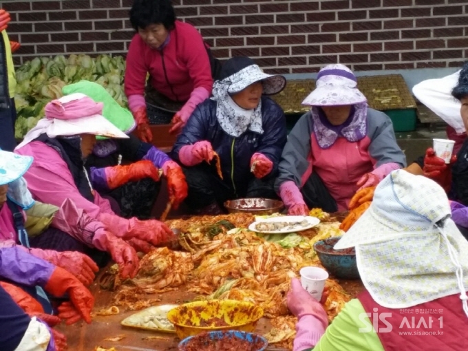 12월 8일 고창에 있는 한 마을에 동네사람들이 모두모여 김장을 하고 있다.