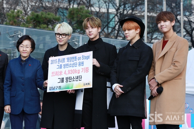 이날 행사에 참석한 B1A4 진영, 공찬, 산들, 방탄소년단 슈가, 진, 지민, 뷔, 카라 허영지, 에이프릴, 강남구청장 등이 참석했다.