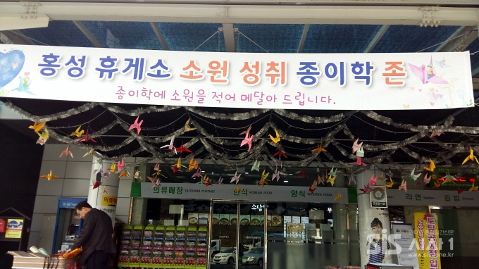 휴게소 관계자에 따르면 종이학에 소원을 적어 매달면 소원이 이뤄 진다는 마음으로 각자 소원을 적어 주면 매달아 준다고 한다.