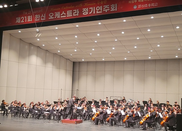 서울 도봉구 한신초등학교 어린이 오케스트라가 전날 경기 의정부예술의전당 대강당에서 제21회 정기연주회를 열고 다채로운 무대를 선보였다.