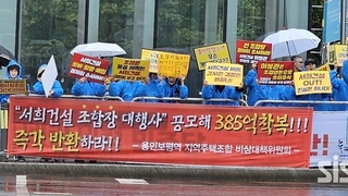 [취재 현장] 국회 앞 용인보편역 조합 비대위..."악덕기업 서희건설" 호소