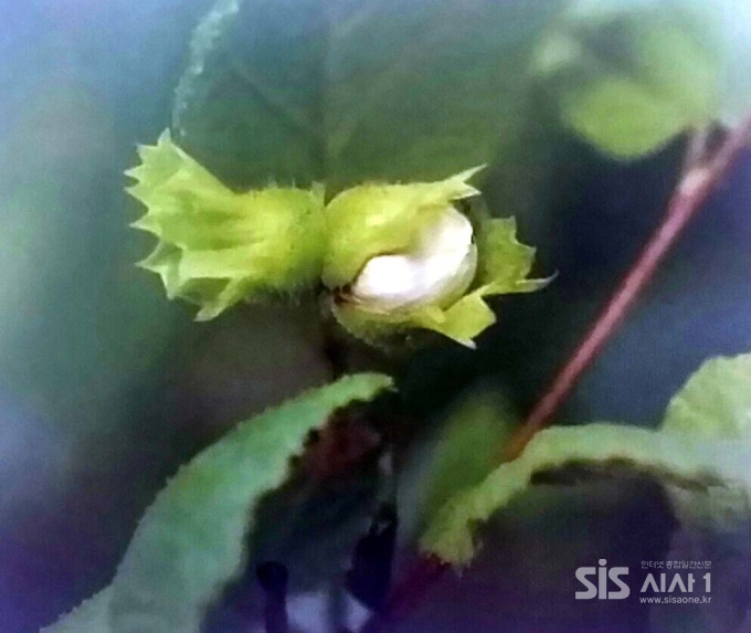 암꽃이삭은 달걀꼴인 약 10개의 꽃이 꽃턱잎에 싸여 있고, 9월에 껍질이 단단한 갈색의 둥근 견과가 달려 익는데 넓은 총턱잎에 싸여 있다.