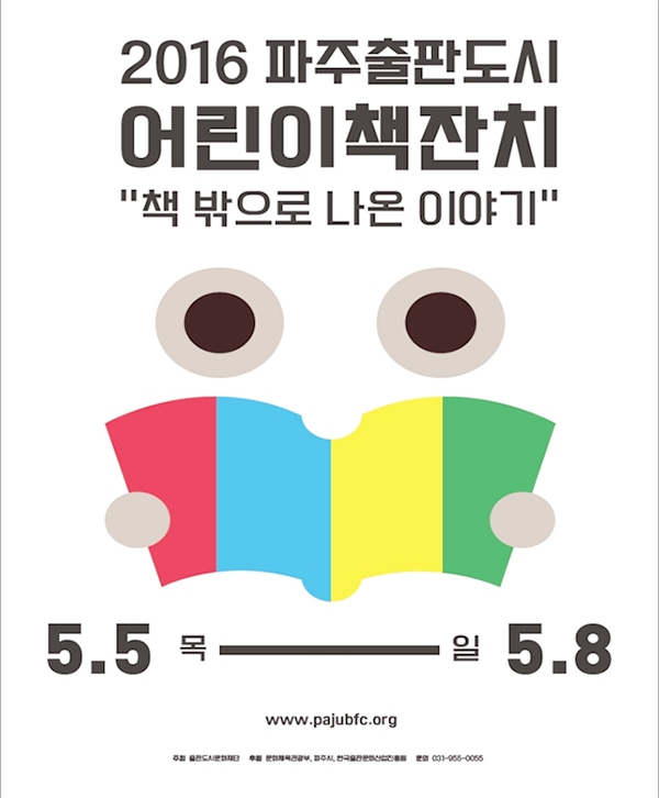 문화체육관광부(장관 김종덕, 이하 문체부)는 파주시(시장 이재홍), 한국출판문화산업진흥원(원장 이기성), 출판도시문화재단(이사장 김언호)과 함께 5월 어린이날을 맞이해 5월 5일(목)부터 8일(일)까지 파주출판도시에서 ‘파주출판도시 어린이 책잔치 2016(이하 책잔치)’을 개최한다.