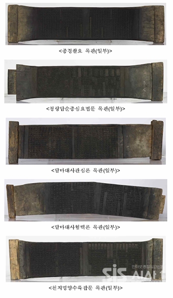 서산 개심사 소장본 「달마대사혈맥론 목판(達磨大師血脈論木板)」은 중국 선종의 시조인 보리달마(菩提達磨)의 법문을 문답형식으로 기록한 『달마대사혈맥론』제1~20장을 목판 7매에 담은 것이다. ‘팔(八)’자형으로 굽어진 목판도 사용하였는데, 이 경우에는 굽어진 형태에 맞추어 내용을 새겨 놓았다. 이렇게 서적을 목판의 크기나 모양에 맞추어 자유분방하게 새긴 사례는 매우 특이한 경우에 속한다.