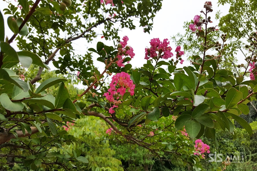 백일동안 피고 진다는 배롱나무 꽃은 백일홍이라 불리며 간지럼을 태우면 나뭇잎이 흔들린다 하여