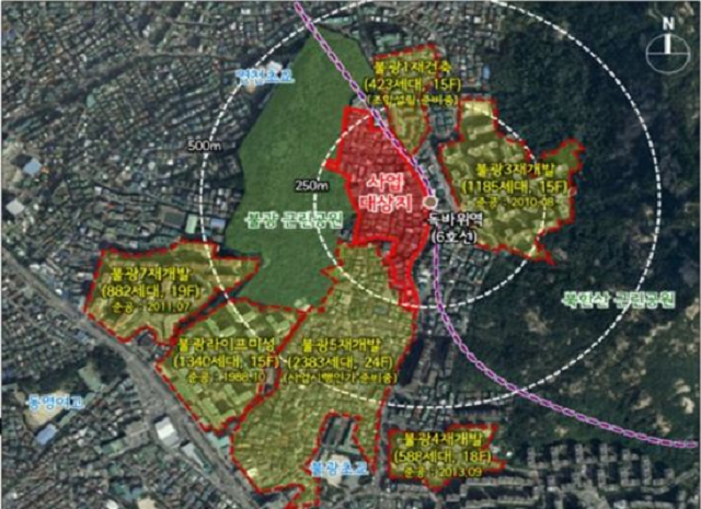 서울 은평구 불광동 독바위역세권 일대에 재개발로 1,305세대 규모의 아파트단지가 들어선다. 서울시는 제15차 도시계획위원회 분과위원회를 열고 불광동 227-7번지 일대 독바위역세권 공공임대주택 건립과 관련해 도시정비형 재개발정비구역 지정(안)이 수정 가결됐다고 24일 밝혔다.