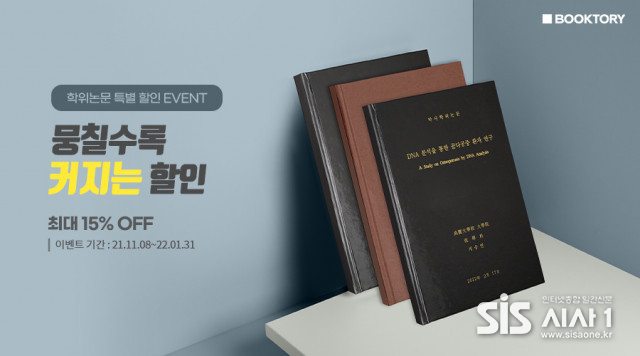 (시사1 = 유벼리 기자) 종합 인쇄 브랜드 북토리는 학위논문 시즌을 맞아 2022년 1월 31일까지 ‘뭉치면 더 큰 할인’ 이벤트를 진행한다고 16일 밝혔다.