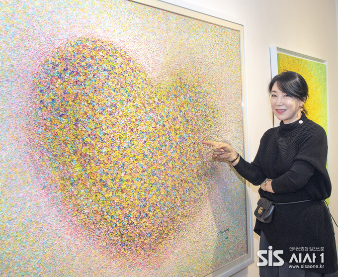 많은 날 동안 붓으로 꽃잎을 떨어뜨리는 전병희 작가의 [마음으로 그리다]라는 작품이 걸린 전시장을 둘러봤다.