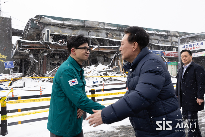 (시사1 = 윤여진 기자) 윤석열 대통령이 한동훈 국민의힘 비상대책위원장이 29일 서천 만남 이후 6일만에 용산 대통령실에서 오찬회동을 한다. 두 사람의 만남은 지난 23일 대형 화재가 발생한 충남 서천특화시장 현장에서 만나 함께 상경한 이후 처음이다.