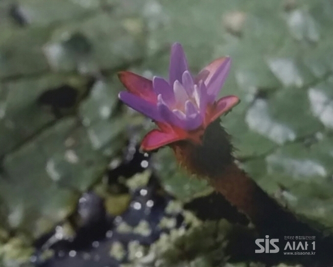 꽃은 7`8월에 꽃잎이 많고 꽃받침조각보다. 작은 자주색 꽃이 피는데 잎 사이에 가시가 돋은 긴 꽃이 착생한다. 낮에 벌어졌다가 밤에는 닫힌다. 즉, 10~14시 사이에 피었다. 지는 개폐운동을 3일간 하다가 물속으로 들어다 씨를 형성하는 폐쇄화이다. 꽃받침은 4조각이며 끝이 날카롭다. 수술은 많아서 8겹으로 돌려 난다. 꽃밤은 긴 타원형이며 8실의 씨방은 하위이다.