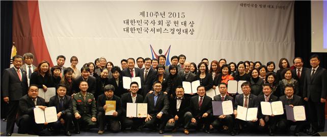 한국서비스산업진흥원(이사장 김영배)이 주최하고 대한민국사회공헌대상 조직위원회가 주관하는 ‘제10회 2015 대한민국사회공헌대상’ 시상식이 11월 18일, 국회 헌정기념관에서 개최됐다.