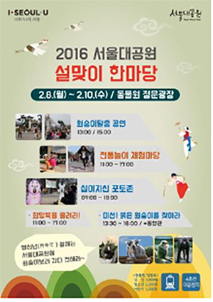 서울대공원(원장 송천헌)은 설날인 2월 8일(월)부터 10일(수)까지 ‘2016 서울대공원 설맞이 한마당’을 펼친다.