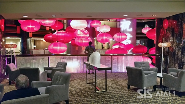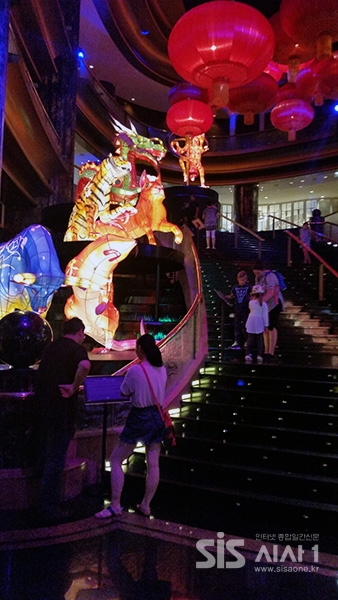 천정에는 60갑자를 상징하는 붉은 색의 원형 랜턴 60개를 매달아 환상적인 분위기를 만들어내고 있다.