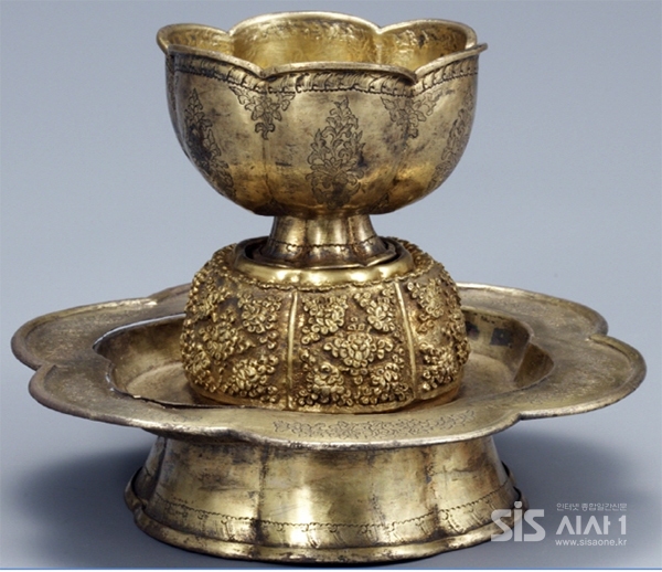 「은제도금화형탁잔(銀製鍍金花形托盞)」은 은에 금을 입힌 탁잔(托盞)으로, 잔과 잔을 받치는 잔탁으로 구성돼 있다.