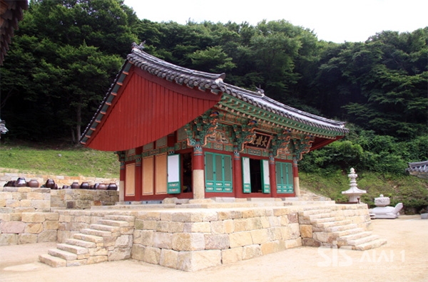정면 3칸, 측면 3칸 규모의 단아한 주심포(柱心包)계 맞배지붕 건물로, 우주(隅柱)의 하부에는 기둥 높이의 1/2 정도까지 원형 돌기둥을 세워 목재 기둥을 받고 있다.