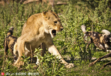 아프리카주 암사자 들개한테 포위 공격당해..다수가 소수를 이기다