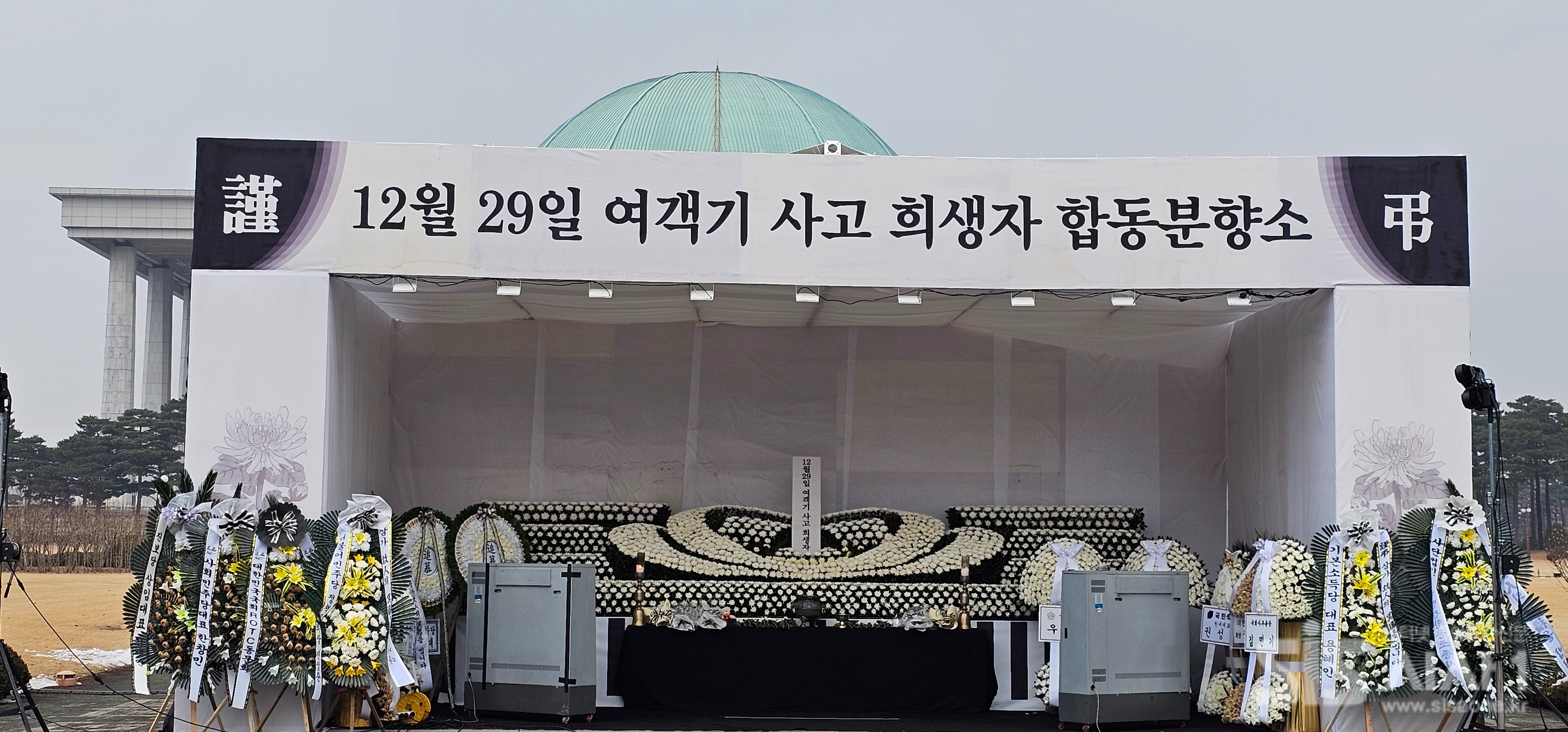 국회가 제주항공 여객기 사고 희생자 합동분향소를 국회 잔디밭에 설치됐다.