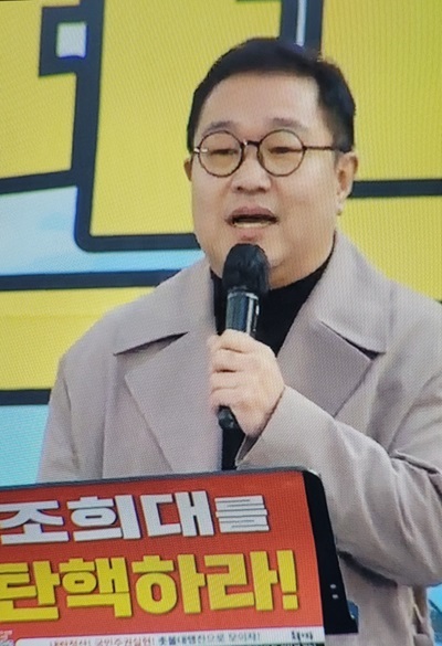 이상민 대구달서달성촛불행동 대표는 15일 오후 3시부터 서울 서초구 대법원 앞(서초역 2번 출구)에서 열린 ‘내란청산-국민주권실현 촉구, 165차 전국집중촛불대행진 집회’에서 무대 발언을 했다.