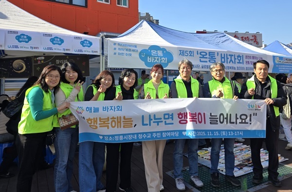 사단법인 행복해늘(이사장 김효정) 회원들이 15일 오후 3시부터 서울 정릉시장 청수교 주민참여마당에서 열린 '제5회 온통 바자회'에 참여해 나눔을 실천했다.
