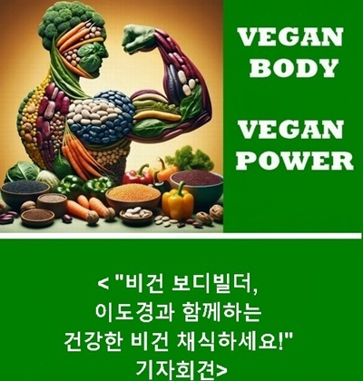 이들 단체는 "비건 보디빌더 이도경씨와 함께하는 건강한 비건 채식을 하라"며 "그는 고기, 생선 등 동물성을 일체 먹지 않고 현미를 주식으로 채소, 과일 등 식물식만 먹으며 5년째 비건(vegan) 보디빌더로 건강을 지키고 있다"고 밝혔다.