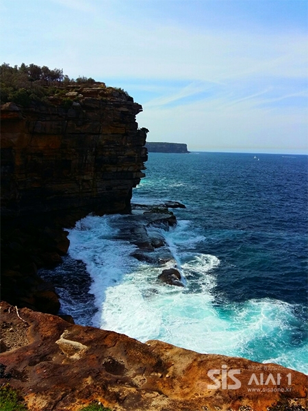 왓슨베이 절벽과 밀려오는 파도를 감상하는 관광객들의 모습이다.