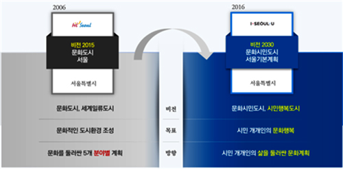 이번 계획은 앞서 '06년 서울시 최초로 수립한 「비전 2015, 문화도시 서울」(5개 분야 27개 과제)이 종료됨에 따라 새롭게 수립한 것으로, 기존 계획의 핵심 방향인 '문화적 도시환경 조성'의 성과를 이어가면서 시민의 문화적 삶의 질을 향상시키기 위한 계획을 담았다.