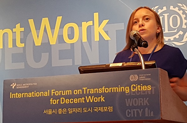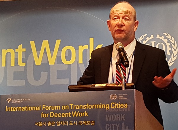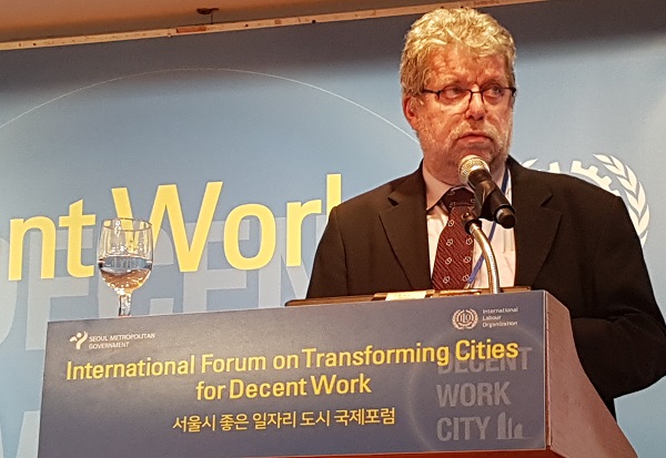 먼저 ‘좋은 일자리를 위한 도시 변혁’을 주제로 발표를 한 다니엘 코스트젤 국제노동기구` 아태지역본부(방콕) 선임 지역임금 전문가는 “노동자들은 새로운 노동기회와 더불어 도시화 및 도시의 급성장으로 인해 촉발된 여러 도전과제에 직면해있다”며 “일자리의 이질성, 다양한 숙련 요구조건, 개개인의 생산수단 접근성 문제를 넘어 소득불평등을 초래하고 있다”고 지적했다.