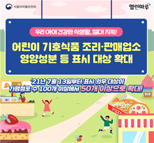 어린이 기호식품 조리‧판매 업소의 표시의무제도는 2010년 1월 처음 도입됐고, 소비자의 알권리와 선택권 보장으로 건강한 식생활에 도움이 되는 것으로 판단해 그간 가이드라인 배포, 업계 설명회 등을 거쳐 이번에 표시의무 대상을 확대했다.