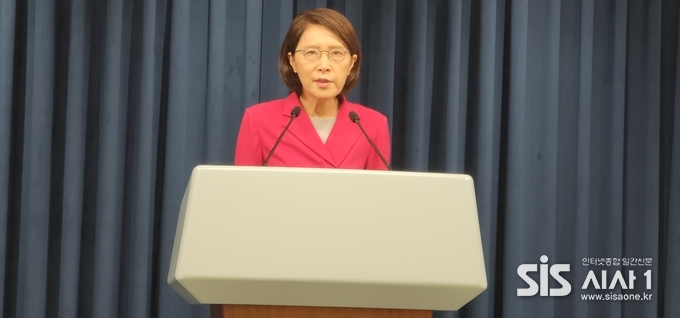 (시사1 = 윤여진 기자)강인선 대변인이 20일 용산 대통령실 브리핑룸에서 현안 관련 브리핑을 하고 있다.