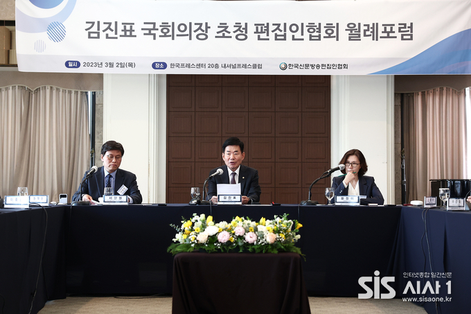 (시사1 = 김갑열 기자) 김진표 국회의장은 지난 2일 서울시 중구 한국프레스센터에서 열린 ‘편집인협회 월례포럼’에 참석해 “우리 정치는 극한대립만 반복하고 있다”며 “정치개혁이 절실하다”고 밝혔다.