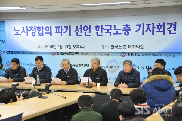 한국노총이 지난해 9월15일 맺은 노사정 합의안을 최종 파기한다고 선언했다.